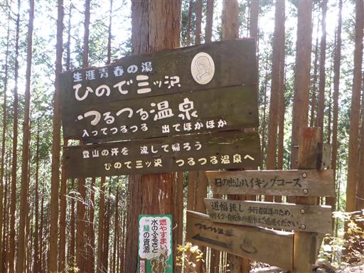 | ルート (Map) | 御岳山駅 (10:26) - (11:34) 日の出山 (12:42) - (13:40) 車道 - (14:09) つるつる温泉 |