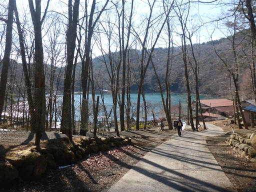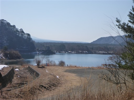 四尾連湖が見えてきた。今回の山で行きたかったのは蛾ヶ岳とこの四尾連湖。