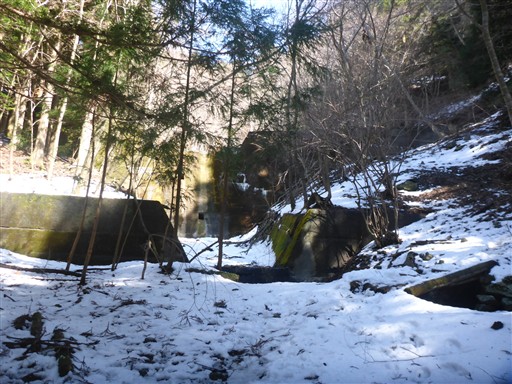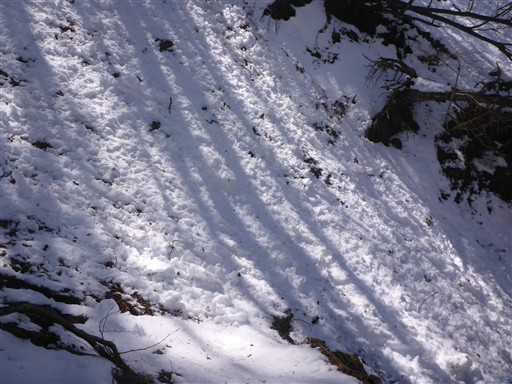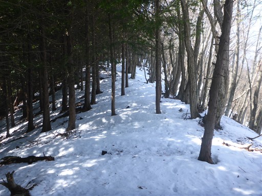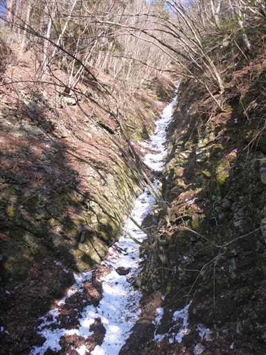 沢沿いは雪が流れた跡がありちょっと嫌だが、