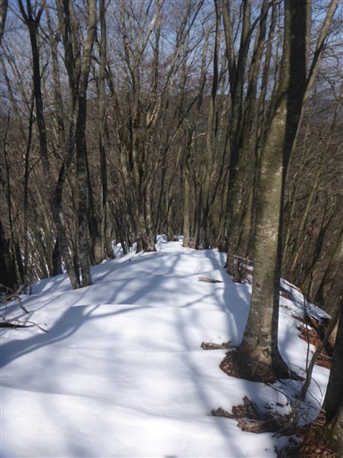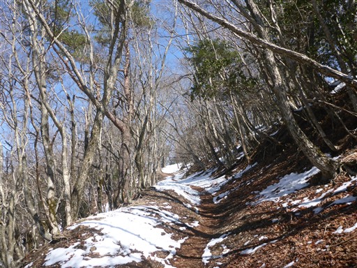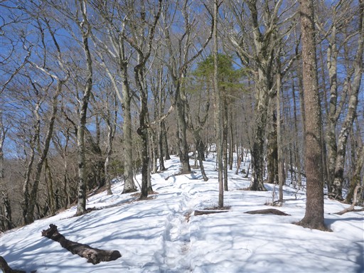 広い尾根。新緑のころにのんびり歩くのに良さそうなところだ。