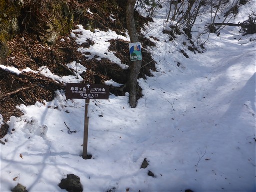 登山道は登り始めから雪が積もっている。
