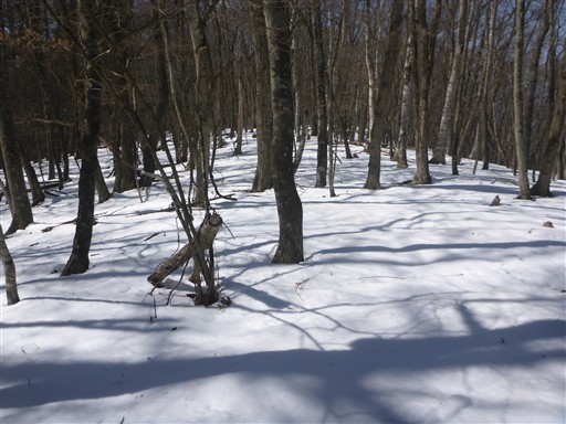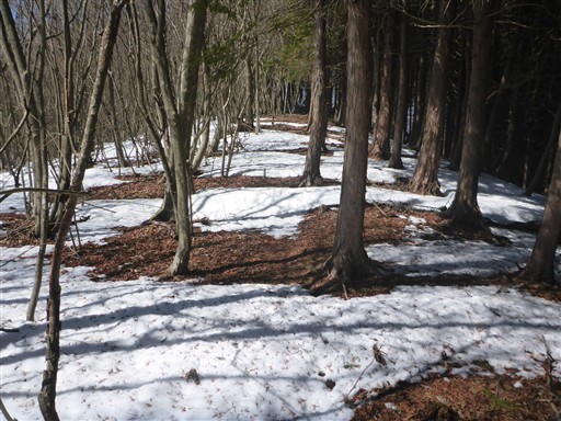 標高はだいぶ下がったが、北側斜面はまだ雪がある。