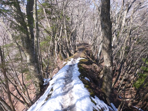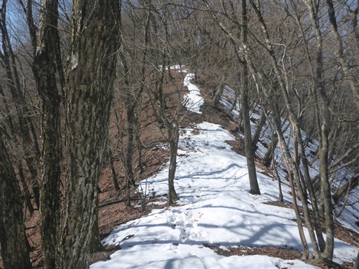 雪の残る尾根道を歩いていく。