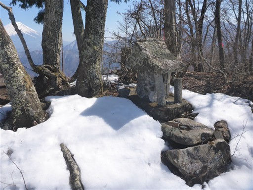 山頂には小さな石祠と小さな地蔵が祀られている。