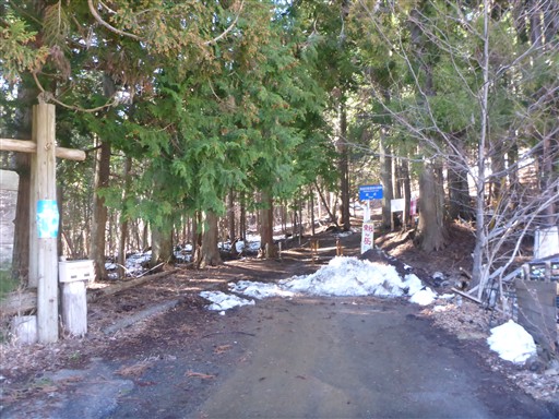 車道を歩いて釈迦ヶ岳から下山してきた道と合流する。