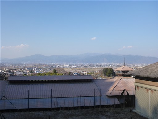甲府盆地と、その奥に八ヶ岳。こちらはかなり霞んでいる。