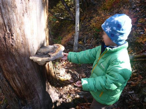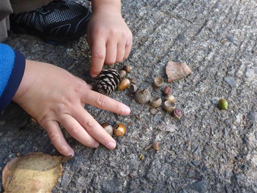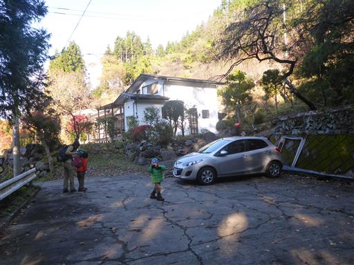 駐車場に到着。息子は山で拾った木の実を選別している。