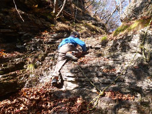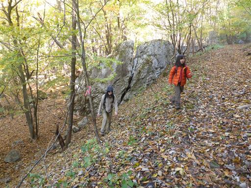 巨大な岩に突き当たる。ここは左から巻いて登っていく。