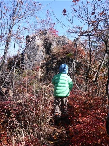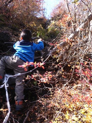 息子とはほとんど手を繋ぎっぱなしで、細い登山道はかなり歩きにくい。
