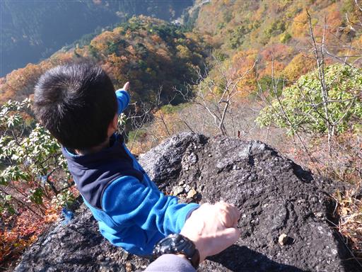 すぐ下は崖、狭い岩場のため息子を下からサポートすることもできない。