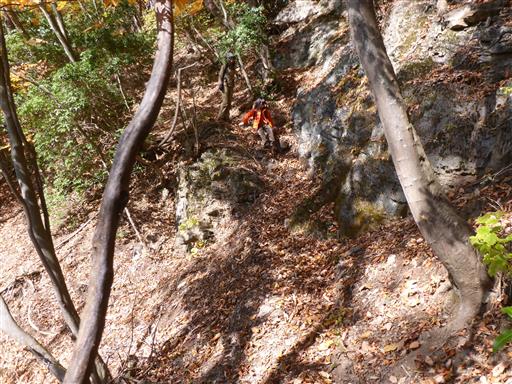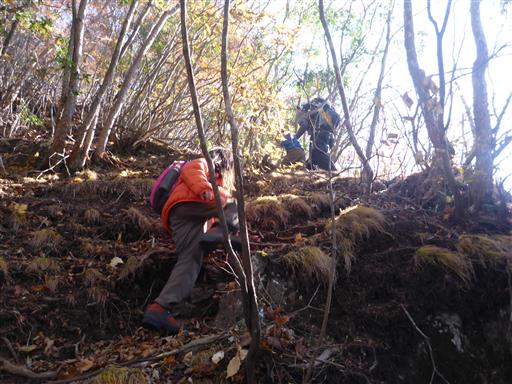 岩場を超えたらその後は急斜面のトラバース道、その後は急斜面の登り。