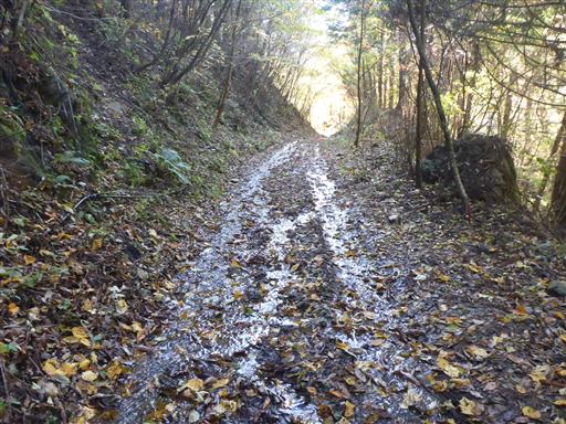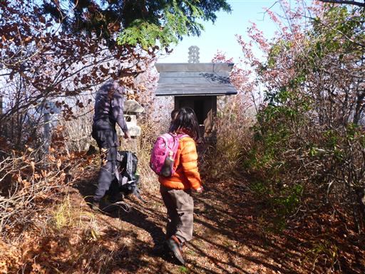 今回の山行は周回コース。祠の裏に続く道を下っていく。