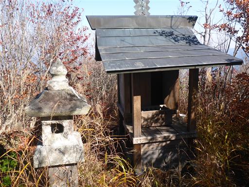 山頂には立派な祠がある。賽銭を入れて手を合わせる。