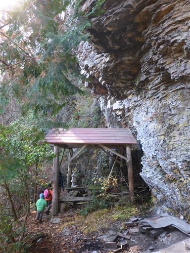 岩壁の穴の開いた部分にも祠が祀らている。桧沢岳神社と書かれている。