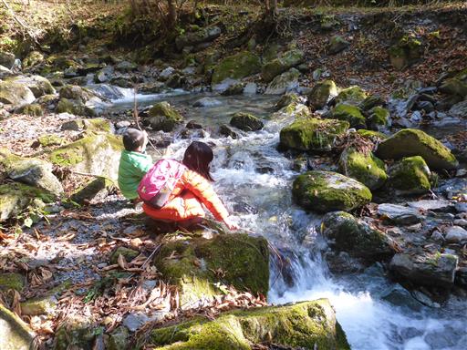 娘は川を渡る練習。一度成功すると、楽しくて何度も往復している。