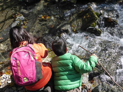 子供たちは木の棒を突っ込んで魚釣りの真似をしたり、石を投げ入れたりして遊んでいる。