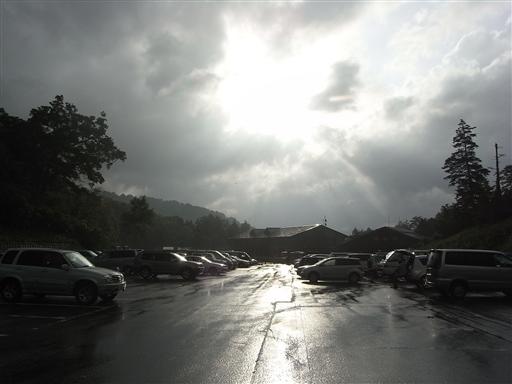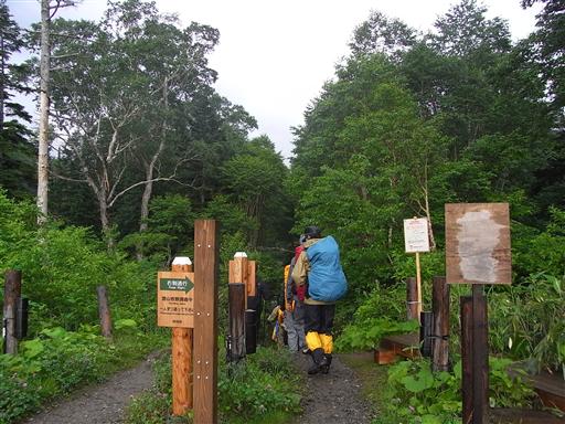 6:16 雨の降る中出発。駐車場を突っ切って登山口に向かう。