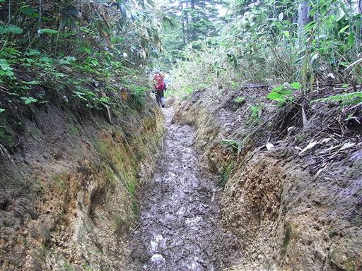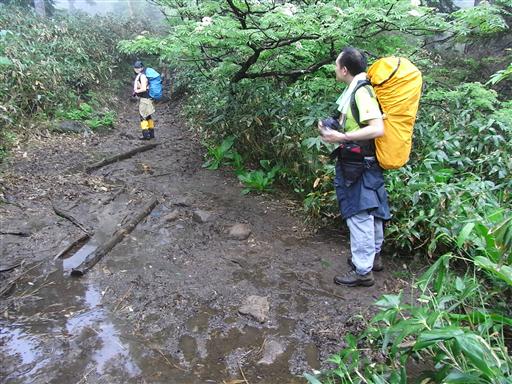 すれ違う登山者の数々は皆泥んこ。道は相当に悪いらしい。