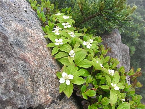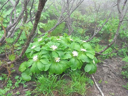 山頂直下に咲くゴゼンタチバナ。有名だが決して目立つ花ではない。