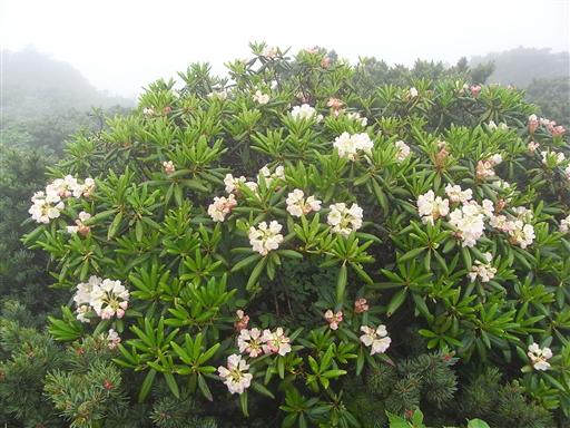 山頂にはあちこちにハクサンシャクナゲが花を咲かせている。