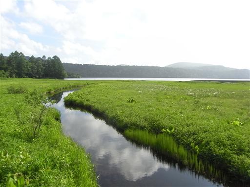 所々平坦になったところに、ぽっかりと湿原が広がっている。