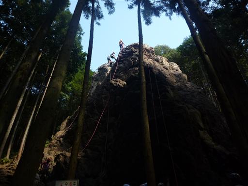 日和田山はロッククライミングで有名な山。今日も多くのクライマーが登っている。