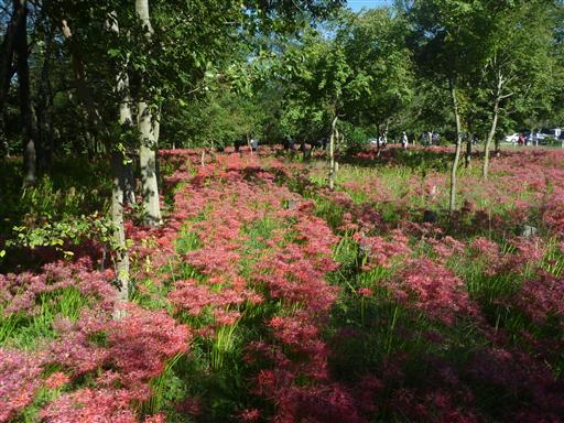 下山後は巾着田を散策する。もうほとんど終わりかけだが、一部彼岸花が咲いている。