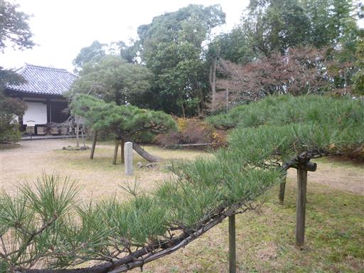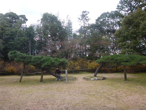 境内には不思議な形の二本の松の木が植えられている。