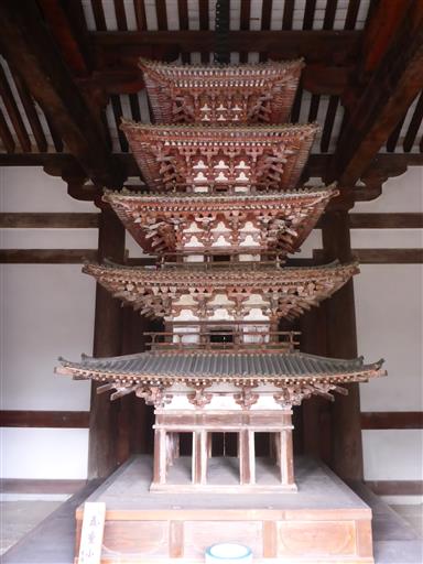 西金堂の中には五重塔がある。建物の中に五重塔があるのは珍しい。