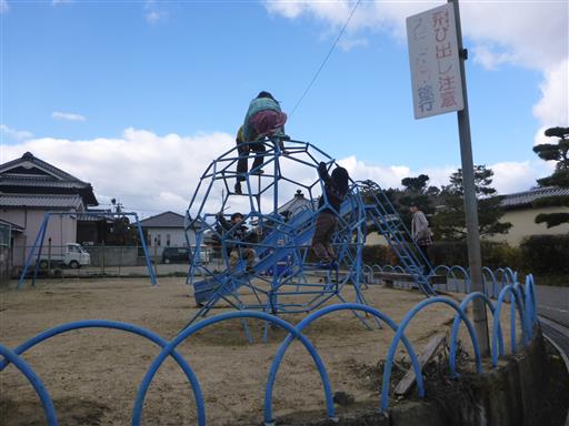 両親が途中で道に迷ったため待っている間、側の公園で遊ぶ。