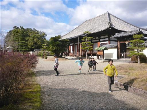 子供達は2つ目の寺で、かなり退屈している。