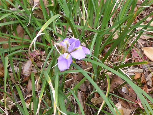 アヤメの花が一輪だけ咲いている。他に椿がチラホラ。