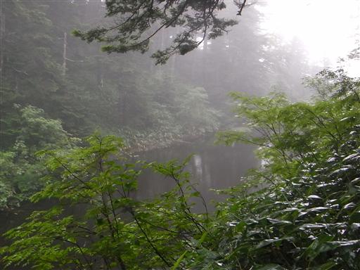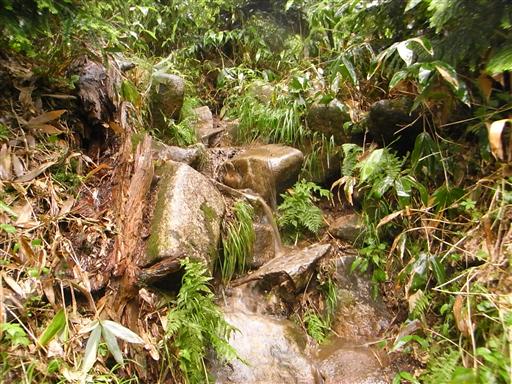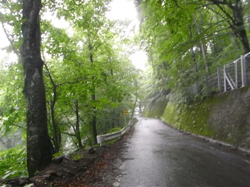 雨の中捜すのも億劫なので、そのまま進んで新中の湯ルートを登ることにする。