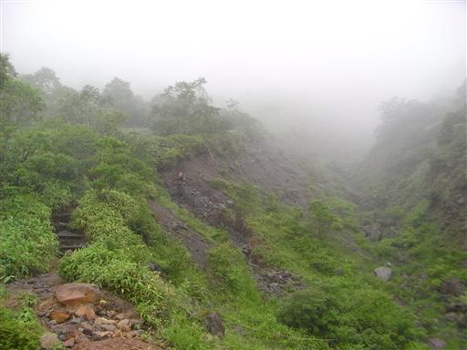 目の前に荒々しい沢が現れる。いかにも火山らしい地形だ。