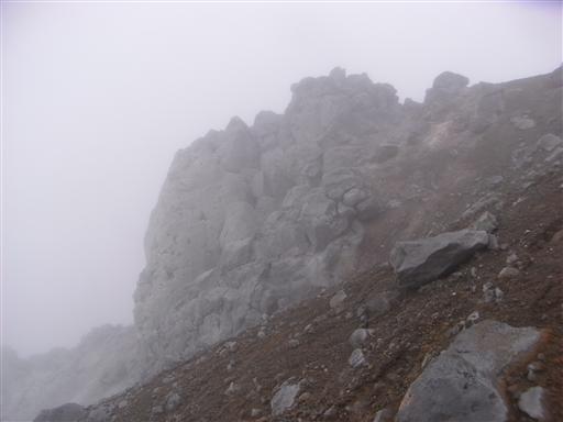 山頂近くになると植物の姿はなくなり、瓦礫の山と化す。