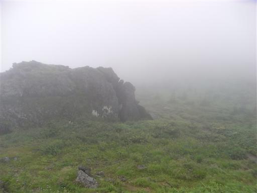 山頂付近の展望。火山らしい風景は広がるが遠望は利かない。