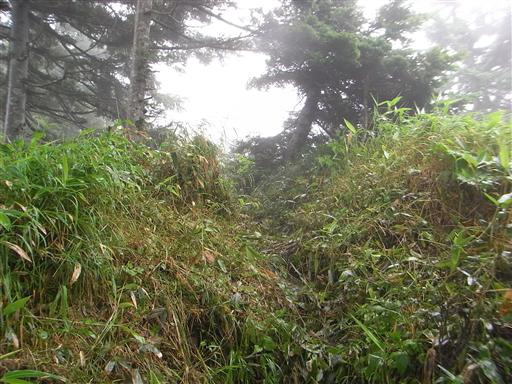 登山道の刈払いは行われているが、かなり荒っぽい。