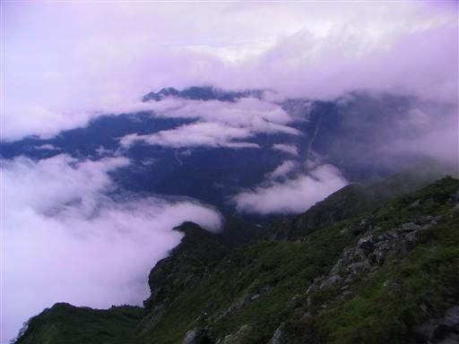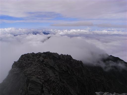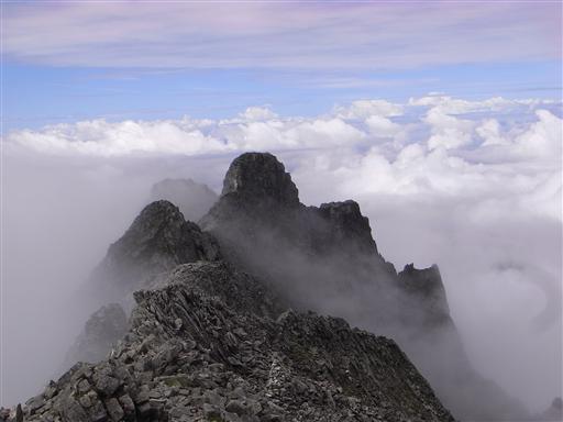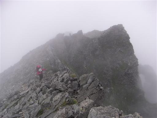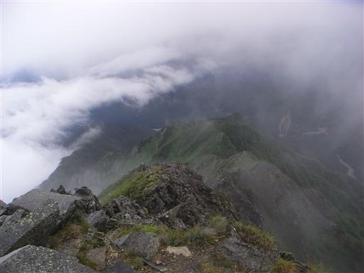 両側が切れ落ちたやせ尾根が続く。気分は爽快だ。