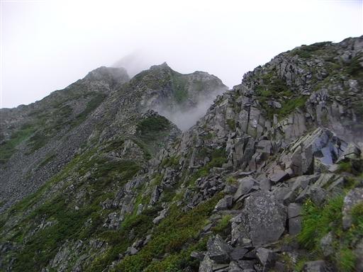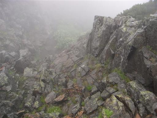 視界がないため、この先の荒々しい岩稜はほとんど望めない。