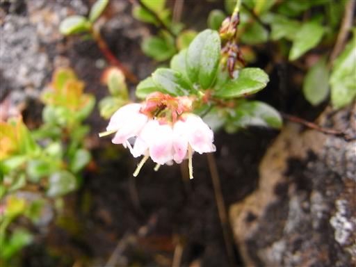 道端にコケモモの花が咲いている。可愛らしい花だ。