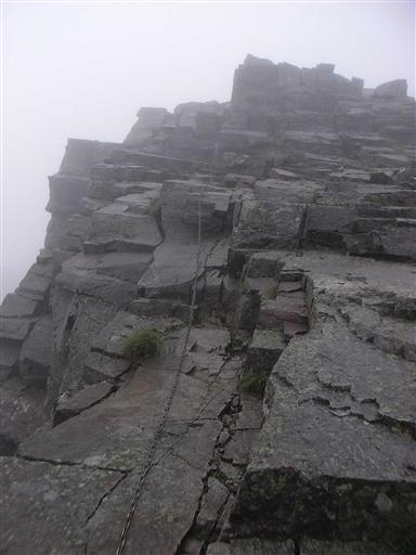 間ノ岳からの下りも長い鎖場。この天気で基本的に岩は濡れている。