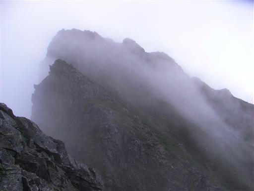 待つ事しばしで、雲の中からジャンダルムが姿を現す。