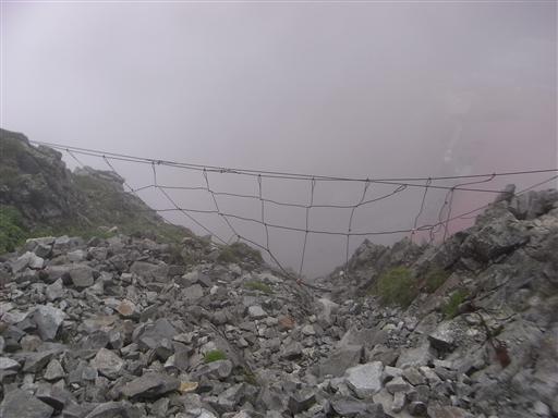 落石防止にしては目が荒すぎるので、道迷い防止のためなのだろうか?