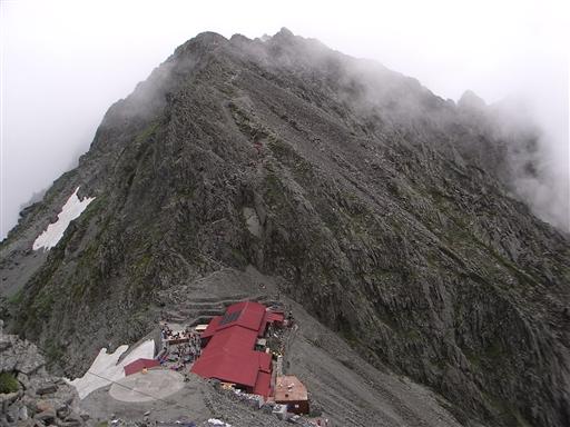 ここから穂高岳山荘まで続く道はアリの行列のように人が続いている。