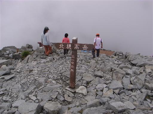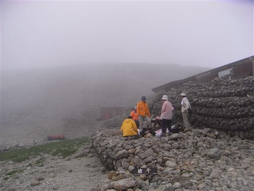 西穂も含めて雲に覆われていて、ほとんど何も見えない。