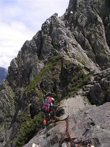ここまででも、なかなかに際どい鎖場がいくつかあった。