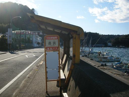 14:13 長浜バス停到着。標高0m。海のすぐ側。