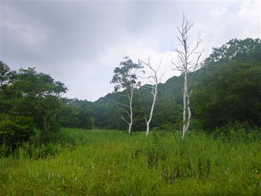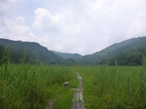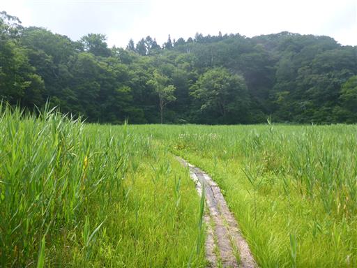 湿原に到着。木道はあるが、葦が繁茂していてあまり湿原っぽくない。