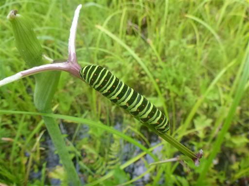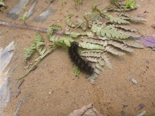 毛虫を発見。全く動かないので棒でつついてみたら、ものすごい速さで逃げて行った。