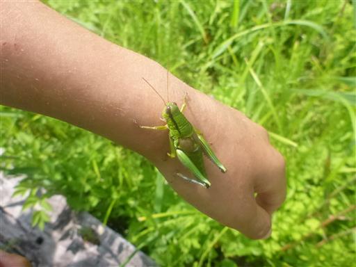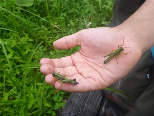 キャンプ場にバッタがあまりいなかったため、子供達は喜んでいる。